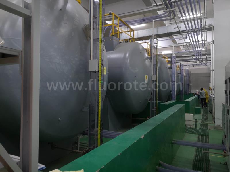 本公司主要生產(chǎn)各類防腐大型儲(chǔ)罐、運(yùn)輸罐車、反應(yīng)罐、反應(yīng)釜、塔器、換熱器、過濾器、攪拌器、管道和管件等。采用的工藝有板材緊襯,模壓燒結(jié),熱滾涂、熱噴涂等,采用的材料有PTFE(聚四氟乙烯F4)、PFA、(可溶性四氟乙烯)、PVDF(聚偏氟乙烯F2)、FEP(四氟乙烯—六氟丙烯F46)、ETFE(乙烯四氟—乙烯F40)、ECTFE(三氟氯乙烯—乙烯F30)、PPS(聚苯硫醚)、PP(聚丙烯)、PO(聚烯烴)、PE(聚乙烯)等各種氟樹脂和工程塑料。能耐除熔融堿金屬以外一切強(qiáng)酸、強(qiáng)堿和有機(jī)溶劑,可廣泛用于化工、石油、化肥、電子、新能源、冶金、電力、制藥、海水淡化、食品等工業(yè)行業(yè)。